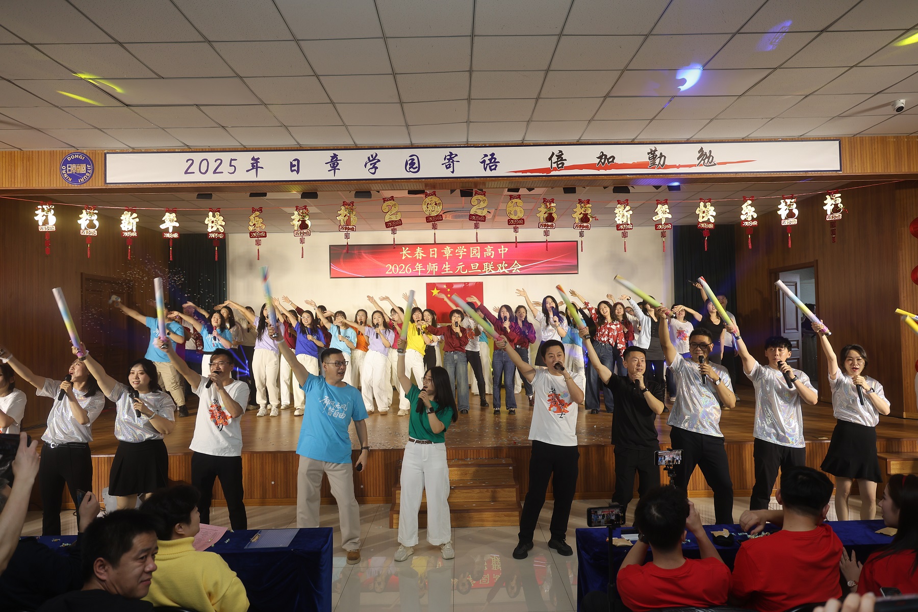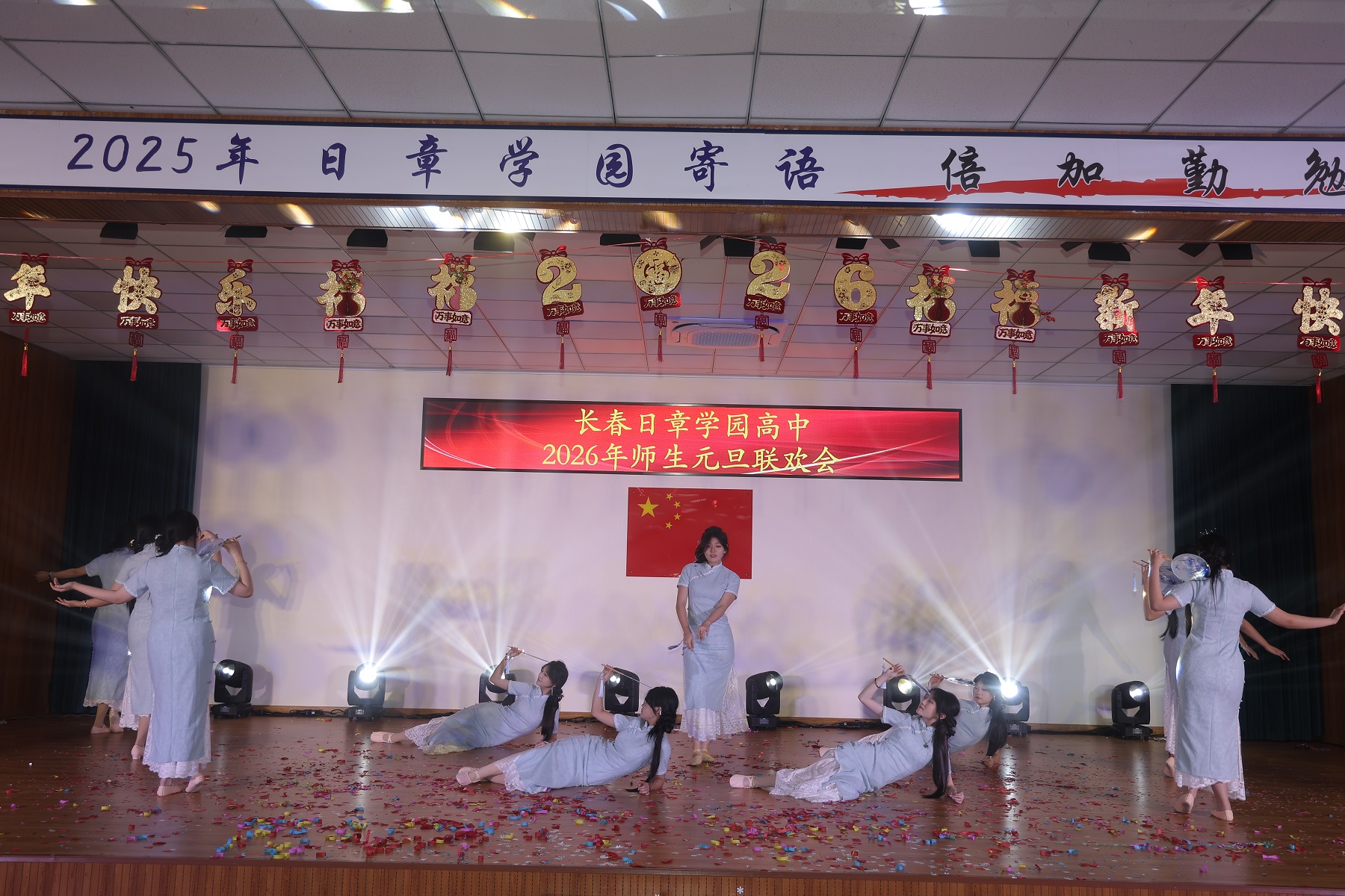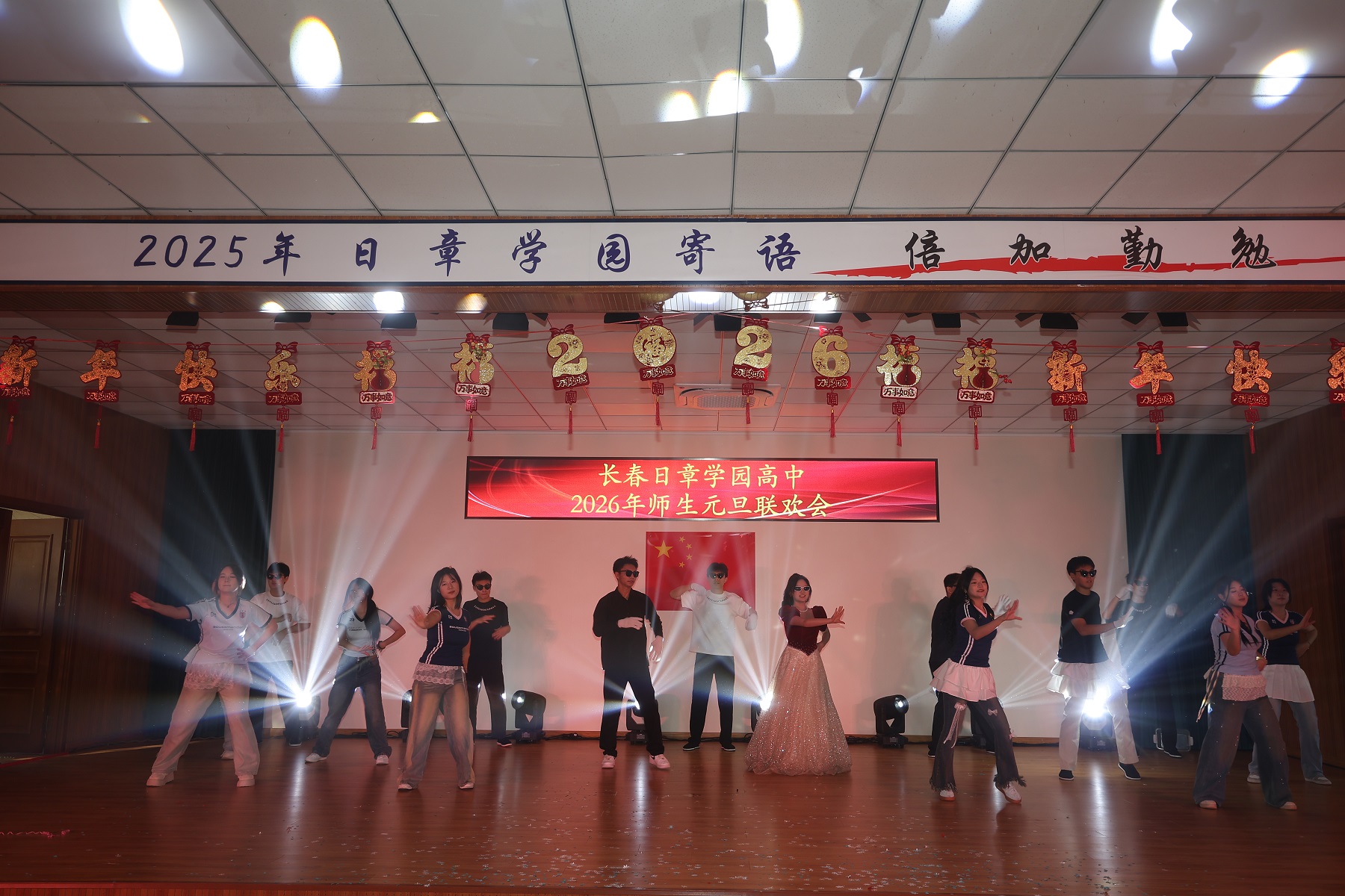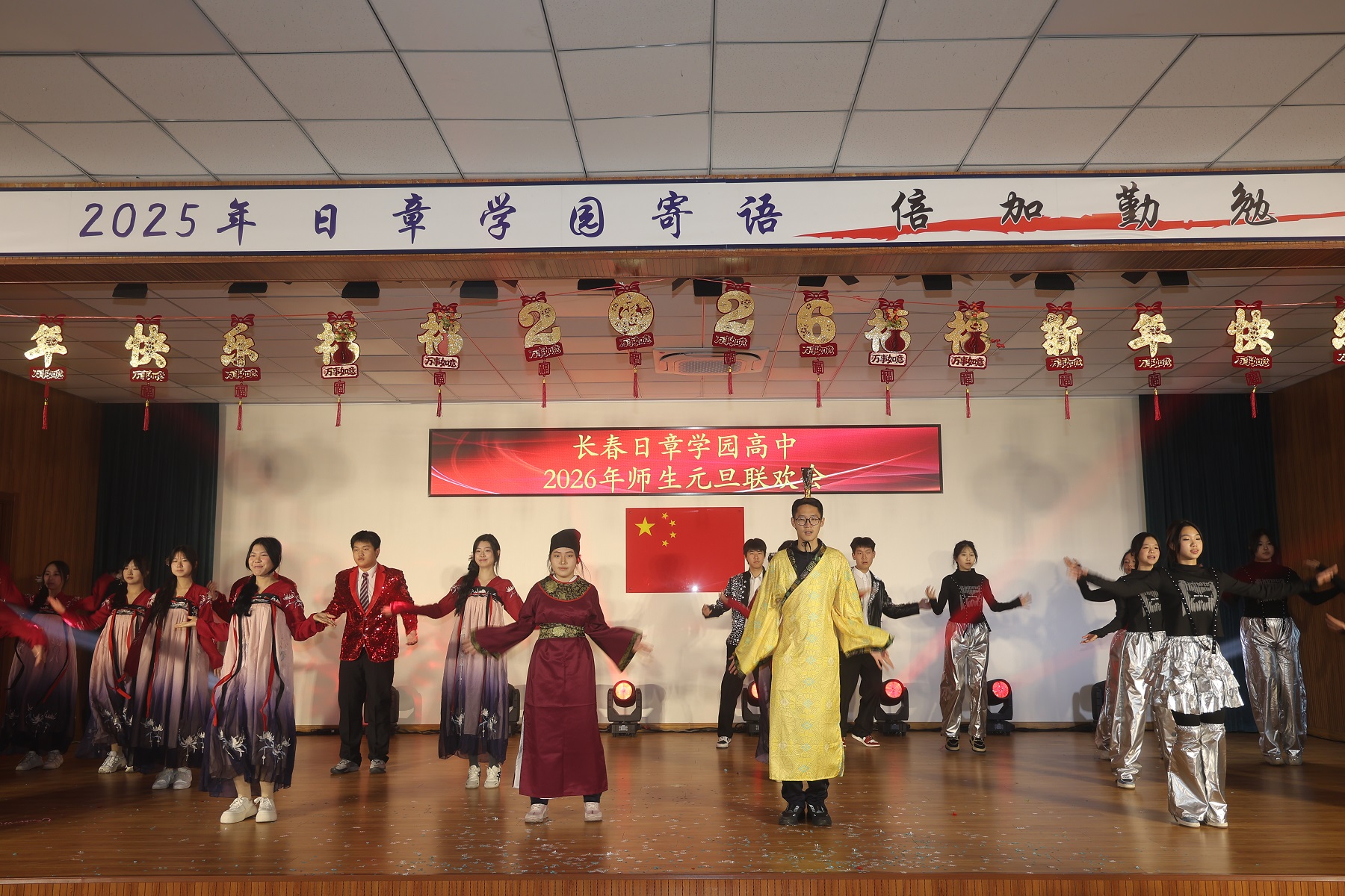 岁序轮转,华章再续。当时光的笔锋勾勒完2025年的丰盈卷册,一幅属于2026年的崭新画卷,正于我们心中徐徐铺展。2025年12月31日上午,长春日章学园高中的礼堂内灯火盈堂、欢声萦绕,师生共聚,以悠扬的歌声致岁月,以翩跹的舞步迎春光。旧年温情未散,新岁希冀已燃,我们在此共赴一场温暖而灿烂的庆典,让情谊在笑语中生根,让梦想在歌声里启程。