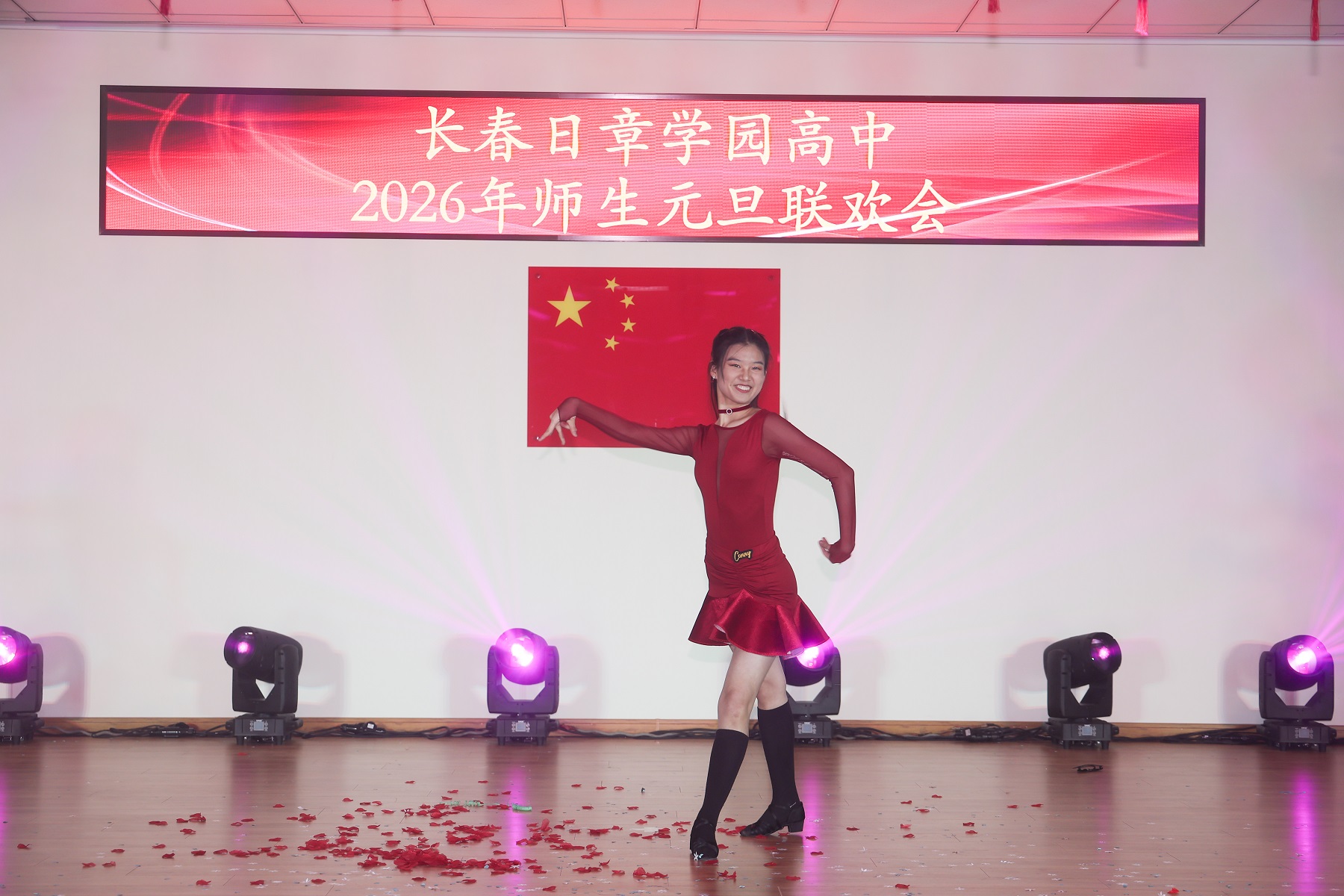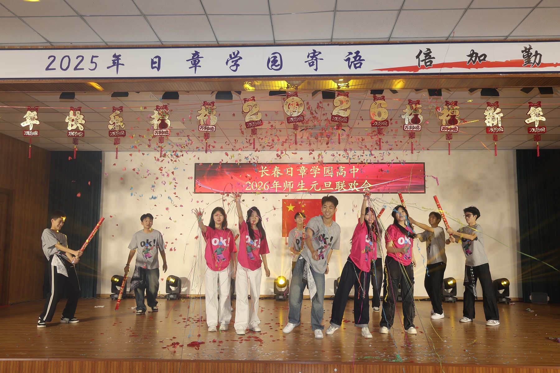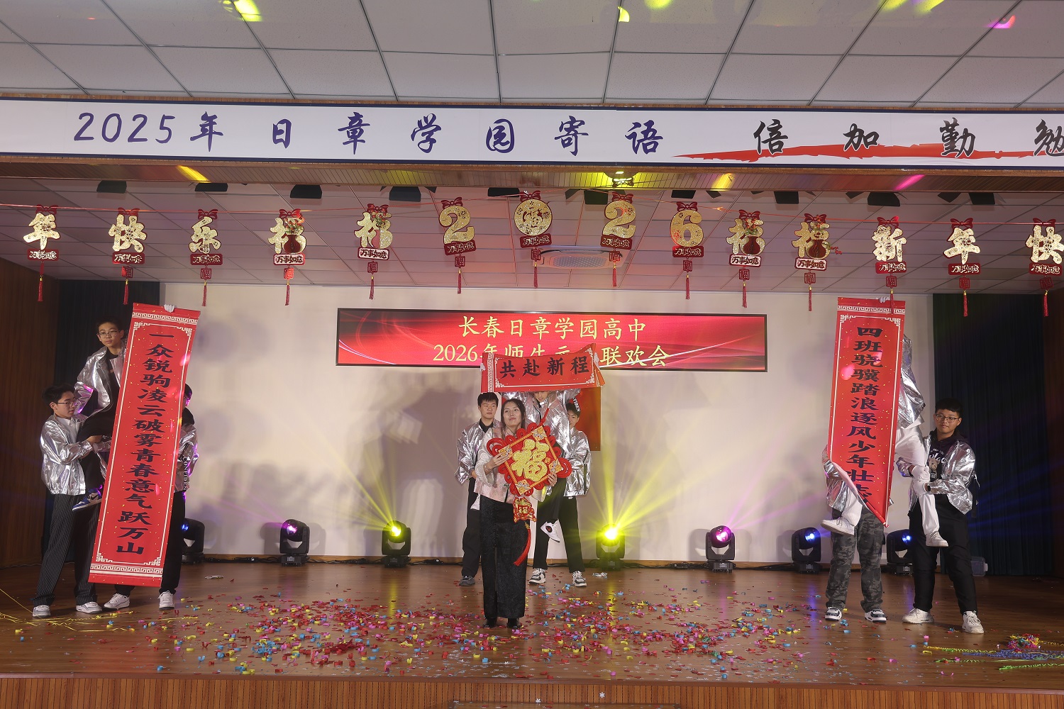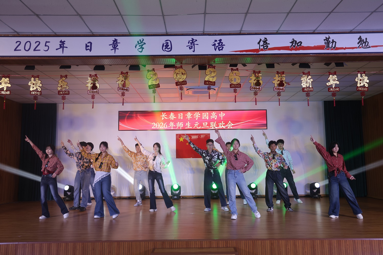岁序轮转,华章再续。当时光的笔锋勾勒完2025年的丰盈卷册,一幅属于2026年的崭新画卷,正于我们心中徐徐铺展。2025年12月31日上午,长春日章学园高中的礼堂内灯火盈堂、欢声萦绕,师生共聚,以悠扬的歌声致岁月,以翩跹的舞步迎春光。旧年温情未散,新岁希冀已燃,我们在此共赴一场温暖而灿烂的庆典,让情谊在笑语中生根,让梦想在歌声里启程。