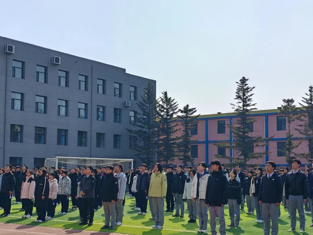 在雄壮的《义勇军进行曲》中,五星红旗冉冉升起。全体师生肃立注目、高唱国歌,以庄严仪式厚植爱国情怀,以昂扬姿态迎接即将到来的冰雪盛会。