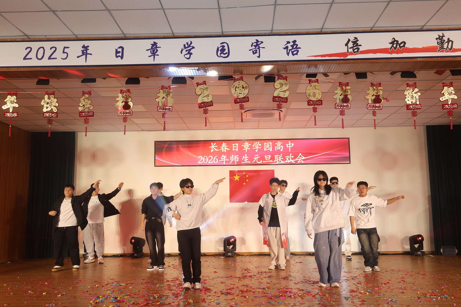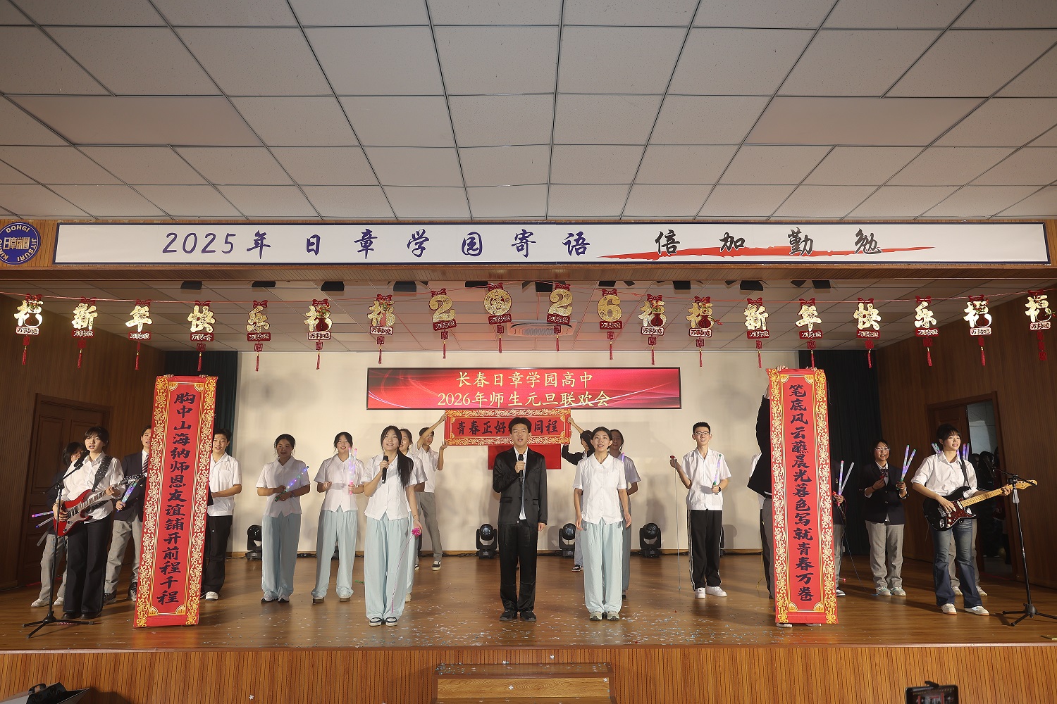岁序轮转,华章再续。当时光的笔锋勾勒完2025年的丰盈卷册,一幅属于2026年的崭新画卷,正于我们心中徐徐铺展。2025年12月31日上午,长春日章学园高中的礼堂内灯火盈堂、欢声萦绕,师生共聚,以悠扬的歌声致岁月,以翩跹的舞步迎春光。旧年温情未散,新岁希冀已燃,我们在此共赴一场温暖而灿烂的庆典,让情谊在笑语中生根,让梦想在歌声里启程。