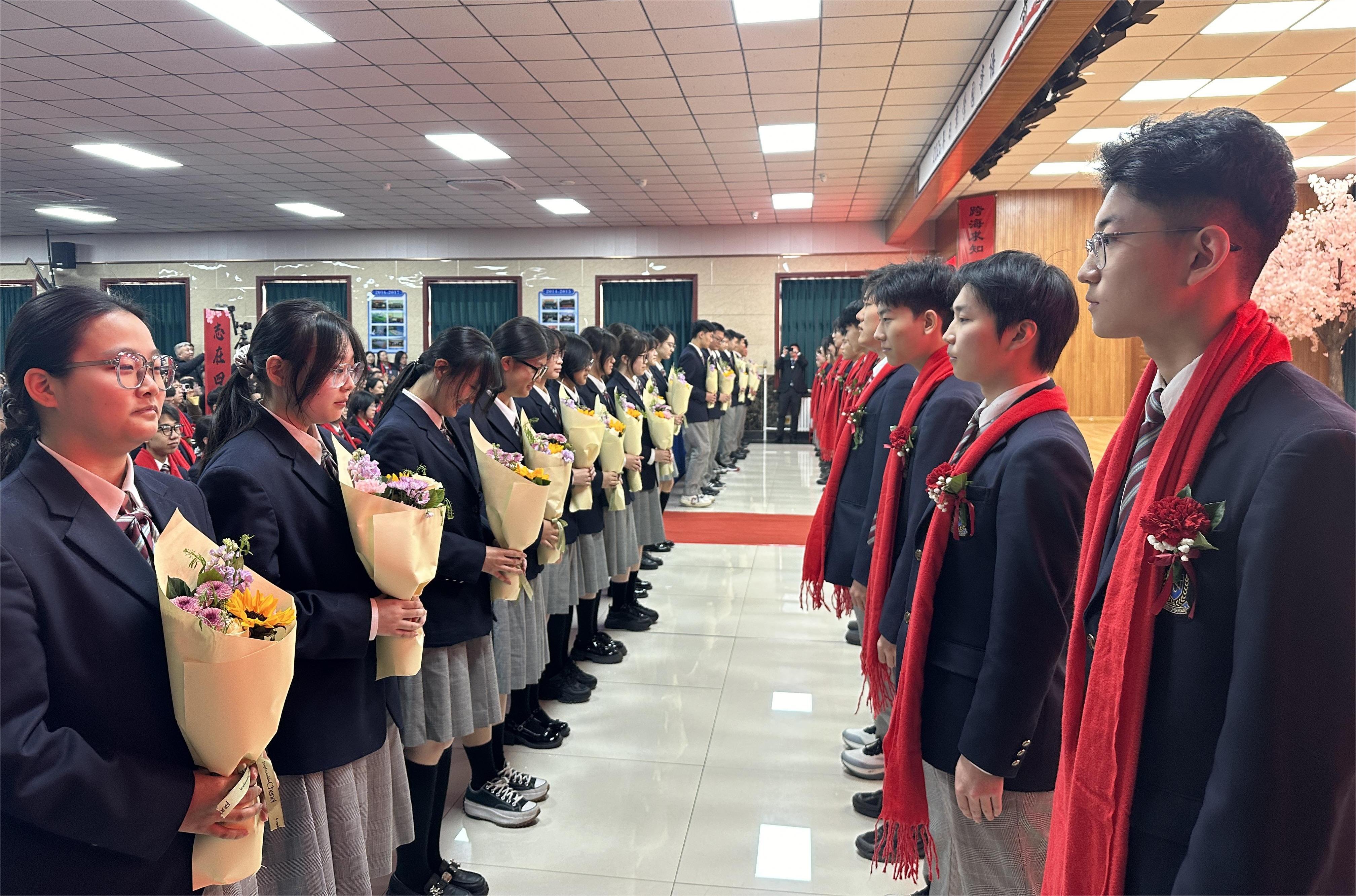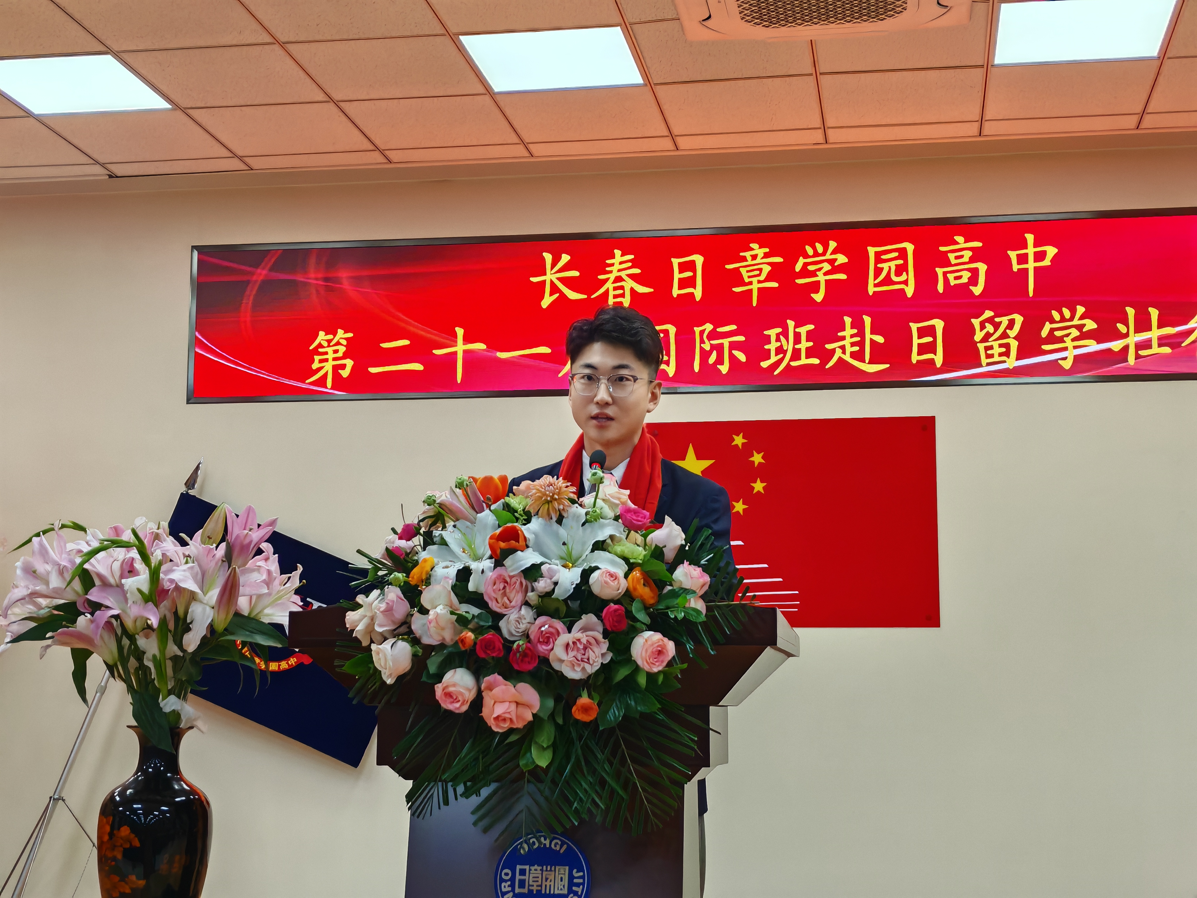 少年之言传心意,青春之语寄期盼。在校生代表高二十一班张子涵同学登台送上临别寄语,字里行间满是对学长学姐的祝福,更有以他们为榜样、立志笃学的坚定信念。高三毕业生代表高三一班刘闻祺同学分享留日期待与青春感言。发言中,有对父母师长的深深感恩,有对母校故土的无限眷恋,更有作为文化摆渡人的使命担当,以及少年远行、逐梦东瀛的坚定气魄。一句句真挚的话语,打动着现场每一个人,也让所有人看到了新时代少年的赤诚与志向。